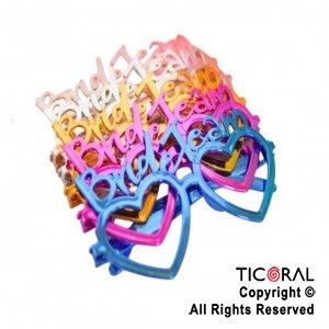 Anteojo Bride team con diseño en forma de corazón. Colores surtidos metalizados (oro, plata, fucsia, azul, rosa gold y violeta). No se puede elegir el color. Material: plástico. Ideales para despedida de solteras o solteros, casamientos. Se pueden realizar tandas temáticas de anteojos.